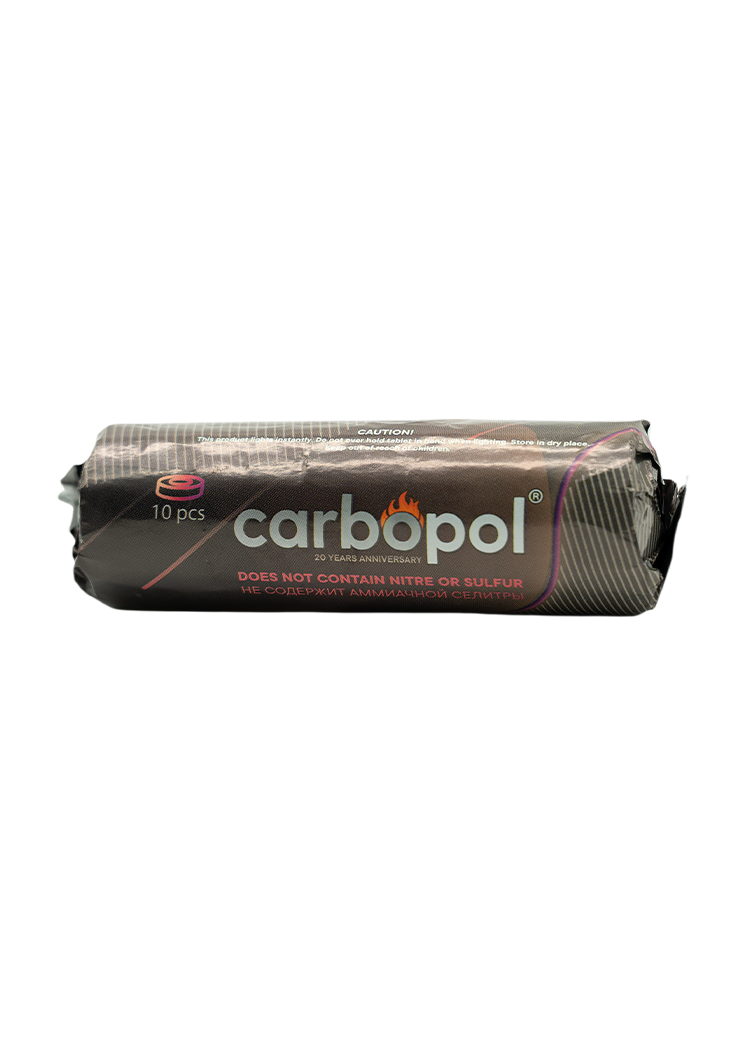 Węgiel samorozpalający Carbopol przeznaczony do trybularzy. Szybko się rozpala i długo utrzymuje żar, zapewniając wygodne użytkowanie. Węgiel ma średnicę 35 mm, a w opakowaniu znajduje się 10 sztuk.